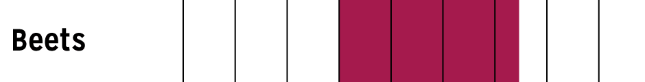 Good beets are smooth, firm and small-sized. They should be firm and not too dark colored. Beets with the greens still attached assure the freshest product. Fresh beet greens have bright green leaves with red veins running through them. Avoid beets that are dark red (almost black) or soft with rough pock-marked skin. Avoid greens that are limp, wilted, or dark green with spots of yellow.