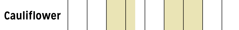 Cauliflower should have white or slightly off-white heads that are firm with no space between the curds. The leaves should be fresh and green. There is no quality difference between large and small heads. Avoid Cauliflower that is soft, has ivory to light brown coloring or that has small dark spots on the curds.