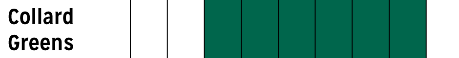Good quality collards have dark-green colored, broad, flat leaves that are crisp, upright and not wilted. Avoid greens with leaves that are wilted, yellowing or have dark green patches of slime on parts of the leaves.