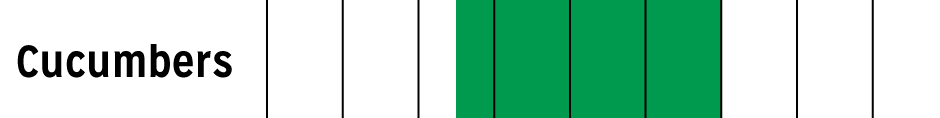 Look for an even dark-green color, firm and relatively thin. Good cumumbers can be either long or short. The thin skin of the cucumber does not require peeling unless waxed. English or hothouse cucumbers grow up to 2 feet long and can be virtually seedless. Avoid Cucumbers that are soft, yellow or wrinkled on the ends. Huge or fat cucumbers may be full of large seeds and bitter.