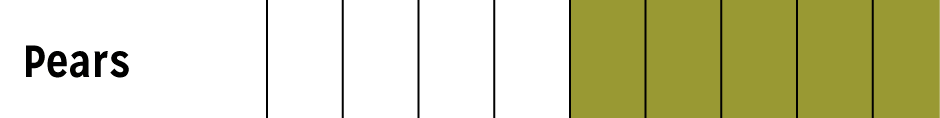 Pears grow in a wide range of shapes from almost round to bell shaped. Their color can vary from green to yellow to red. Look for pears that have no bruises and only a few minor scuff marks. When ripe, pears are slightly sweet scented and bruise easily. Avoid Pears with soft spots or scars that are more than skin-deep.