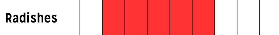 Radishes can be purchased in bunches, with their greens attached, or in bags with greens clipped off. Look for radishes that are smooth, firm, and small to medium sized. The coloring should be an even bright cherry red with no blemishes or scars, and tops should be bright green and crisp. If the tops are yellow, limp or slimy, the radishes are either old or have not been refrigerated properly. Also, avoid Radishes that are soft, dull-colored, have white or brown scars, or black spots.