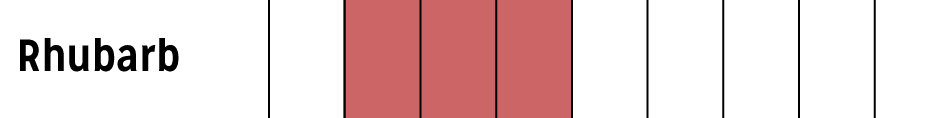 Rhubarb is a vegetable, but used like a fruit in sweetened sauces, pies, and other desserts.